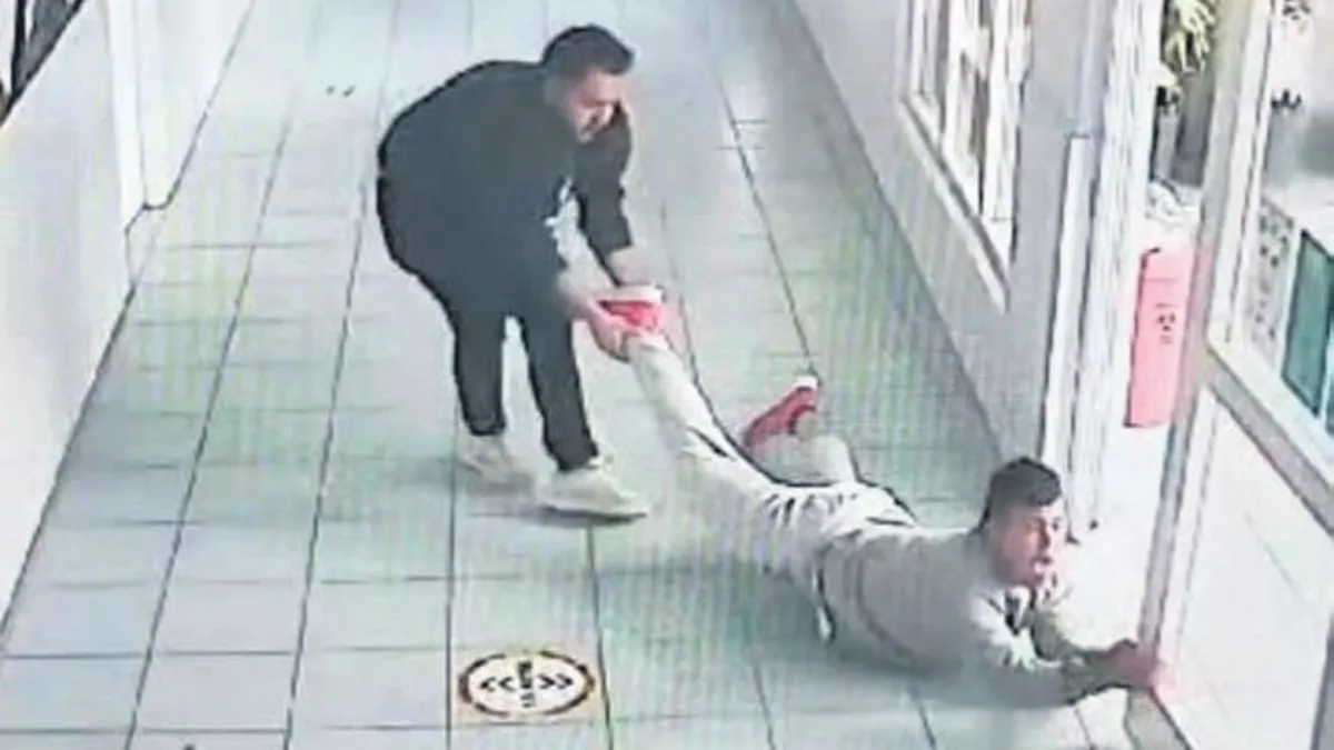Mücahit Mert, Down Sendromlu öğrencisinin önce sağ bacağını çekiyor, ardından çocuğun sırtına bacağını koyup şiddet uyguluyor
