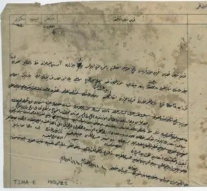Mektubi Kalemi Fi 28 Ocak 1882 'Kudüs-i Şerif Mutasarrıflığı'na Kudüs'te ikamet eden Matmazel Saint-Criq'in (?) tasarrufunda bulunan tarlada, eski eserlerden bir adet taş ortaya çıktığı ve bunun içeriğini gösteren bir evrakın gönderildiği; bunun devlete ait olması gerekse de orada kıymetini tasdik edecek ehil kimseler bulunmadığından bu konuda ne yapılması gerektiğinin sorulmasına dair 20 Aralık 1881 tarihli ve kırk üç numaralı yazınız üzerine, adı geçen evrak gönderilmiş ve konu sorulmuştur. Alınan cevaptan anlaşıldığına göre bu taşın müzeye ait eserlerden olmadığı, görülmeden de değerinin takdir edilemeyeceği bildirildiğinden, yine yerinde ehil kişiler marifetiyle kıymetinin takdir edilmesi, Müze-i Hümayun için alınarak gönderilmesi hususunda tarafınıza arz edilmiş olduğundan, gereğinin yapılması arz olunur. Fi 30 Ocak 1882