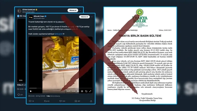 Bakanlıktan yapılan açıklamaya göre, videonun çekildiği market hakkında araştırma başlatılırken, yağ üreticisi de iddialara yanıt verdi. Üretici firma, "İlgili ürünün bayi maliyetlerinin güncel piyasa raf fiyatlarıyla uyumlu olduğunu, iddia edilen 151,50 TL tedarik maliyetinin ise 2023 yılına ait olup 2025 yılı rafine sıvı yağ maliyetleriyle ilgisi bulunmadığını" ifadelerini kullandı.