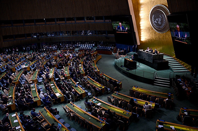 Başkan Erdoğan, BM'de düzenlenen Filistin Konulu Yüksek Düzeyli Uluslararası Konferans'ta konuştu. (AA)