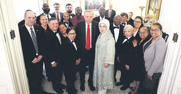 Başkan Erdoğan ve eşi Emine Erdoğan, çok özel konukların ağırlandığı Blair House'da çalışanların isteğini kırmayıp fotoğraf çektirdi.