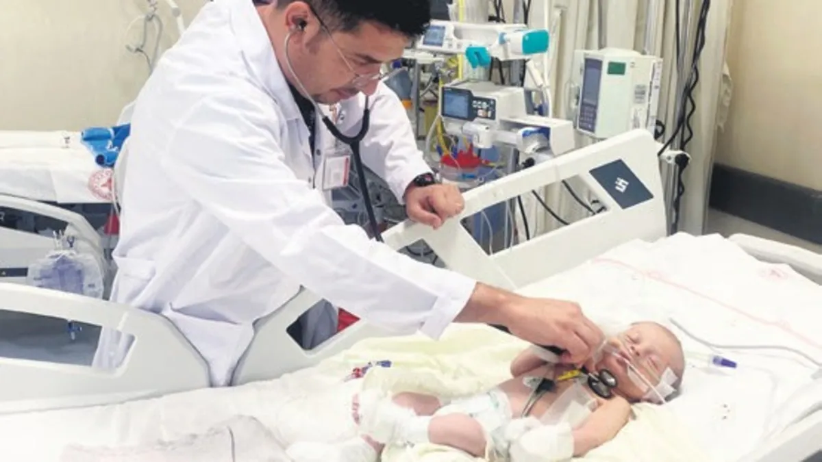 Ağrı'da doğuştan kalpten çıkan aort damarı gelişmediği ve kalbinde delik olduğu tespit edilen 1.5 aylık Asel Çelik, ambulans uçakla Konya Şehir Hastanesi'ne sevk edildi. Türkiye'deki nadir merkezlerden olan Çocuk Kalp ve Damar Cerrahisi Kliniği'nde 4 saat süren kritik ameliyatla Asel bebeğin gelişmeyen aort damarı yapay damarla onarılarak hayata tutunması sağlandı.
