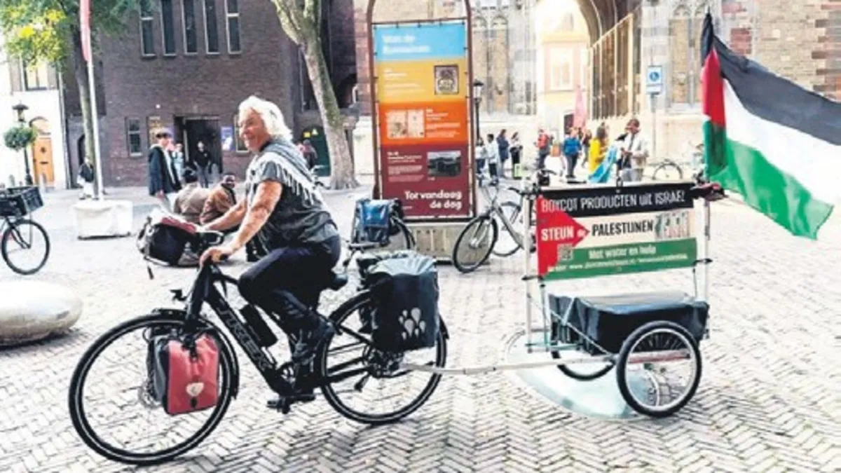 Hollanda'da 74 yaşındaki Maria, İsrail'in saldırıları sonucunda Filistin ve Gazze'de yaşananlara dikkati çekmek için bir ay boyunca bisikletle tüm ülkeyi dolaştı.