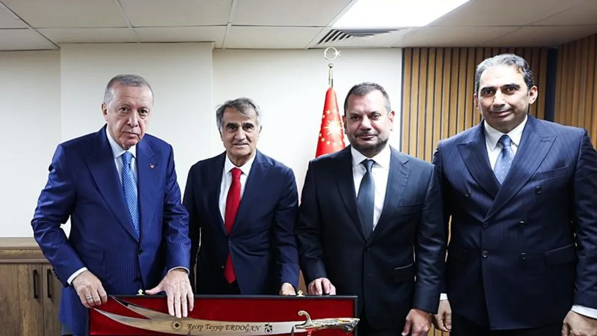 Başkan Recep Tayyip Erdoğan, toplu açılış töreni için geldiği Trabzon'da, Trabzonspor Kulübü Başkanı Ertuğrul Doğan, Asbaşkan Zeyyat Kafkas ve Şenol Güneş ile bir araya geldi. Görüşmede Başkan Erdoğan'a isminin yazılı olduğu Sürmene kılıcı hediye edildi.