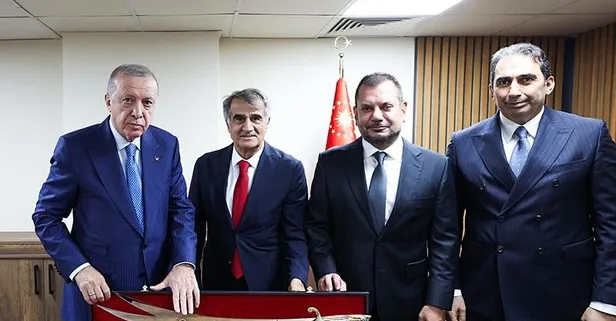 Görüşmenin sonunda Başkan Ertuğrul Doğan, Asbaşkan Zeyyat Kafkas ve Şenol Güneş tarafından Başkan Erdoğan'a üzerinde isminin yer aldığı işlemeli bir Sürmene kılıcı takdim edildi.