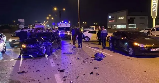 Çarpmanın etkisiyle hızlanan Özkan Ç. yönetimindeki otomobil de önünde ilerleyen Ekrem Ö.'nün(40) kullandığı 16 BJH 908 plakalı otomobile arkadan çarptı. Ekrem Ö. yönetimindeki otomobil ise önünde ilerleyen Mehmet G.(36) yönetimindeki 16 AFZ 249 plakalı otomobile, o da önündeki Ebubekir A.'nın(25) kullandığı 16 BGV 505 plakalı hafif ticari araca çarptı.