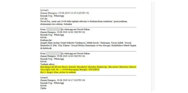 19 Ağustos 2019 tarihli bir diğer WhatsApp yazışmalarında ise Necati Özkan ile yapılan bir görüşme daha dosyada kayda geçti.