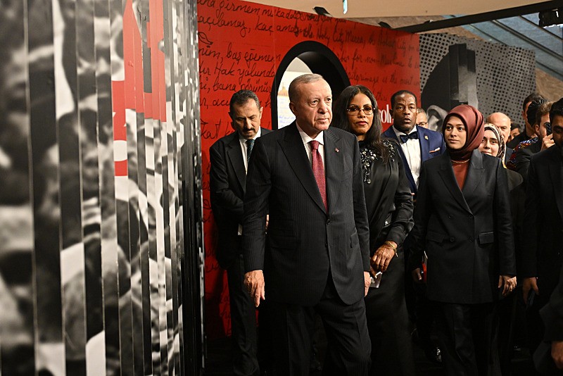 Başkan Recep Tayyip Erdoğan, Atatürk Kültür Merkezi'nde Şule Yüksel Şenler ile Malcolm X'in hak ve özgürlük mücadelesine ışık tutarak miraslarını yaşatmayı amaçlayan ʺYankılarʺ sergisinin açılışına katıldı (Fotoğraf: AA)