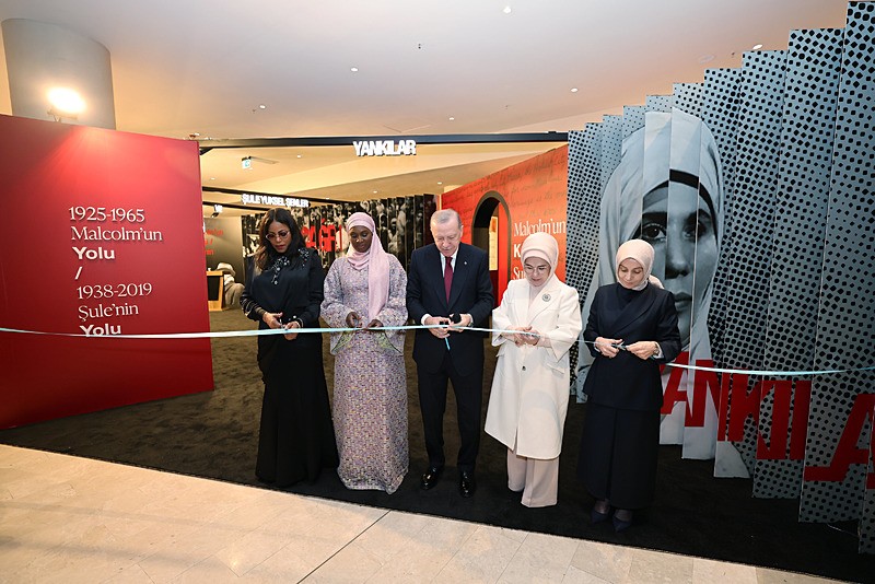 Başkan Erdoğan ve eşi Emine Erdoğan İstanbul'da Atatürk Kültür Merkezi'nde düzenlenen Şule Yüksel Şenler ile Malcolm X'in hak ve özgürlük mücadelesine ışık tutarak miraslarını yaşatmayı amaçlayan 'Yankılar' sergisinin açılışına katıldı. Sergi açılışına Malcolm X'in kızı İlyasah Shabazz ve AK Parti Grup Başkanvekili ve Vakfın Mütevelli Heyeti Başkanı Leyla Şahin Usta da katıldı.