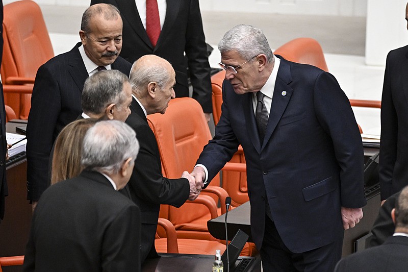 İYİ Parti Genel Başkanı Müsavat Dervişoğlu ile MHP Genel Başkanı Devlet Bahçeli selamlaştı (AA)