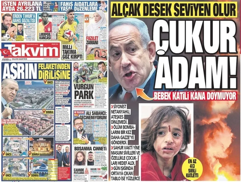 TAKVİM'in insan odaklı gazetecilik anlayışı 2025 yılında da devam etti. Anadolu'nun güzel, fedakar, çalışkan, eli öpülesi insanlarını sayfalarımıza taşımayı sürdürdük. İnsan hikayelerini elimizden geldiğince birinci sayfamızdan, manşetlerimizden duyurmaya çalıştık. Bunun bizim bir görevimiz olduğunu düşünüyoruz.