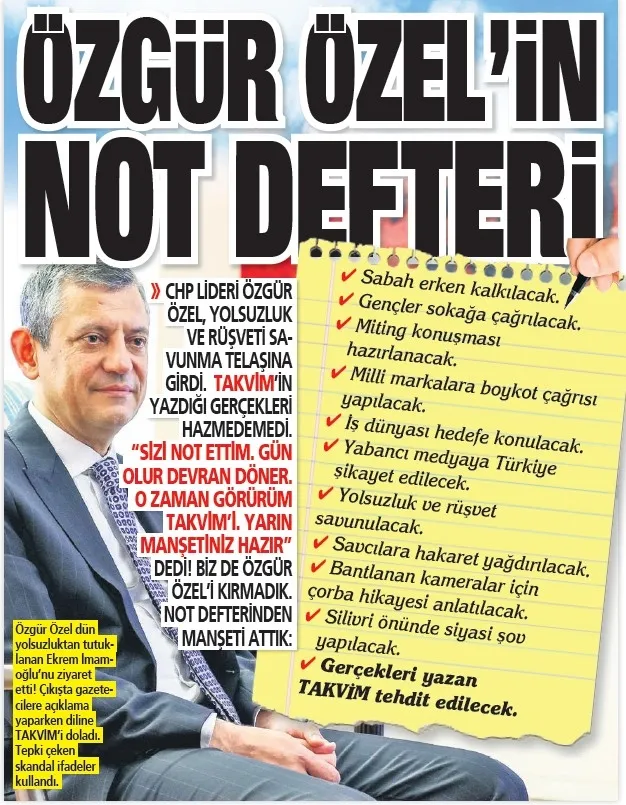 Özel haberlerimizle bu sürecin doğru anlaşılmasını sağlamaya çalıştık. Bu süreçte çok konuşulan manşetlere, başlıklara, özel haberlere imza attık. Gerçekleri yazmamızdan dolayı CHP Genel Başkanı Özgür Özel'in gazetemizi hedef alan tehdit dolu açıklamalarını da anlayışla karşıladık, kendisine manşetten cevap verdik...