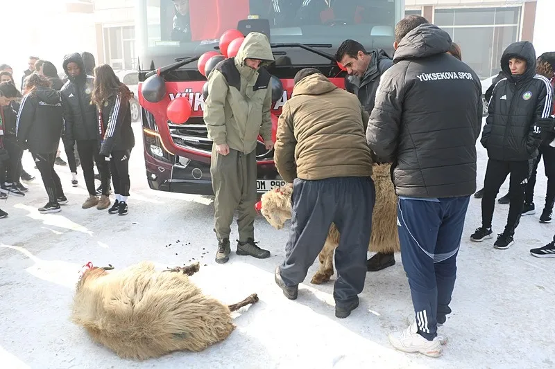 Kulüp yöneticileri tarafından teslim alınan otobüs için spor tesislerinin bahçesinde tören düzenlendi. Kurbanların kesildiği, duaların edildiği törende sporcular, Kaymakam Mustafa Akın ve katılımcılarla halay çekerek mutluluklarını paylaştı.
