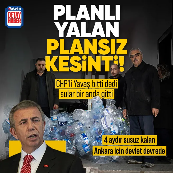 Başkent günlerdir susuzlukla boğuşuyor, kente bağlı birçok ilçede saatlerce süren su kesintileri vatandaşları isyan noktasına getirirken,CHP'li Yavaş’ın “ortada kriz yok” açıklaması ile tepkiler büyüdü. Yavaş’ın bu çıkışıyla aynı saatlerde ASKİ tarafından yayımlanan planlı ve arızalı su kesintisi listeleri, yaşanan tabloyu açıkça ortaya koydu. “Algı operasyonu” savunmasıyla eleştirileri savuşturmaya çalışan Yavaş, susuz kalan Ankaralıları isyan ettirdi.