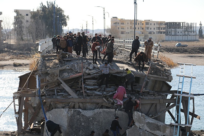 Terör örgütü YPG/SDG'nin Suriye Ordusu'nun girişini engellemek amacıyla yıktığı köprüler görüntülendi (AA)