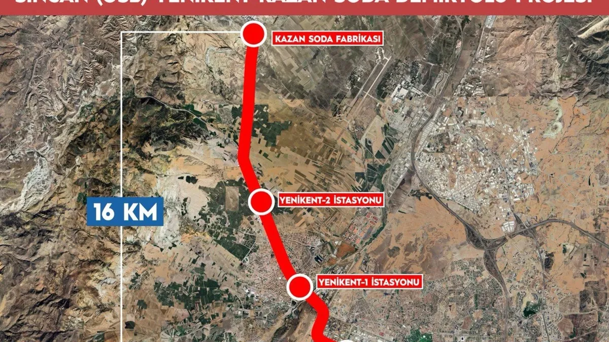 Ulaştırma ve Altyapı Bakanı Abdulkadir Uraloğlu, Sincan(OSB)-Yenikent-Kazan Soda Demiryolu Projesi ile Başkentray banliyö hattının Yenikent’e uzatılacağını açıkladı. Projeyle hem yolcu taşımacılığında hem de yük seferlerinde büyük bir dönüşüm hedeflenirken, yılda 4,4 milyon ton yük taşınması planlanıyor. Bakan Uraloğlu, "291 personelimiz ve 127 makinemizle 7/24 aralıksız çalışıyoruz." şeklinde ifade etti.