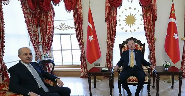 Başkan Erdoğan Dolmabahçe'de TBMM Başkanı Numan Kurtulmuş'u kabul etti