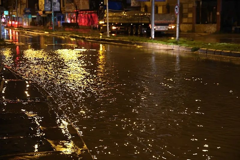 İlçenin farklı bölgelerinde su birikintileri oluştu, sürücüler ulaşımda zorluk yaşadı.