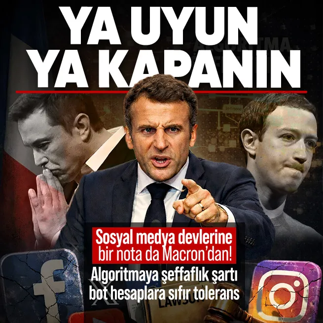 - Macron, sosyal medya platformlarından botları tamamen engellemelerini ve tek bir hesaba sahip tek bir kişi olmasını sağlamalarını istedi.