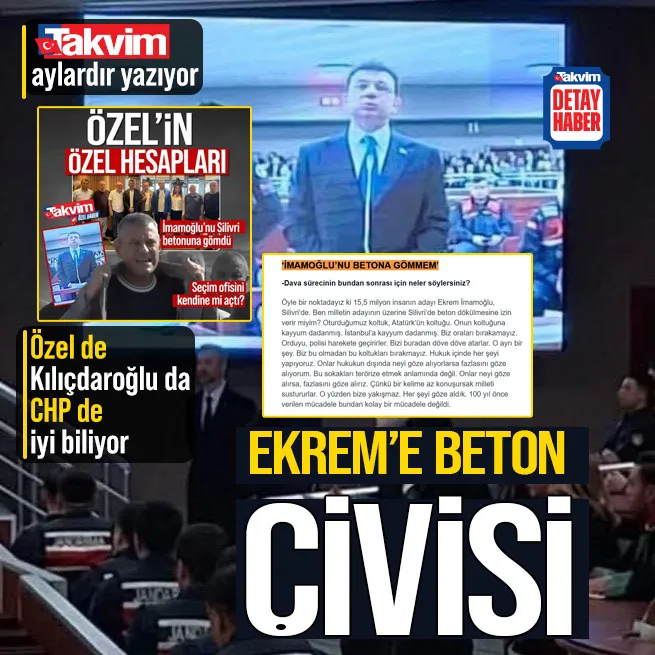 Özgür Özel'in adaylık planı ve Kılıçdaroğlu'nun dönüş hazırlıkları TAKVİM'in aylardır manşet manşet yazdığı "EKREM İMAMOĞLU'NU SİLİVRİ BETONUNA GÖMECEKLER" hakikatini akıllara getirdi.
