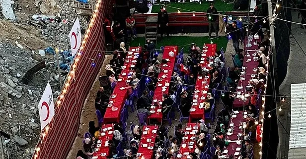 Gazze’de ramazanın ilk akşamında sokak aralarında kurulan uzun sofralarda yüzlerce Filistinli, Türkiye’den gönderilen yardımlarla oruçlarını açtı. Türk Kızılay tarafından Yermuk bölgesinde hazırlanan iftarda sıcak yemekler dağıtılırken, yerlerinden edilen aileler aynı sofrada buluştu. Soykırımın başından beri Gazze'deki insani yardım faaliyetlerini ramazanın gelmesiyle daha da genişleten Kızılay, günlük sıcak yemek kapasitesini 60 bin kişiye çıkardı. Kızılay'ın ramazan boyunca toplam 1 milyon 800 bin kişilik iftar desteği sunması planlanıyor.