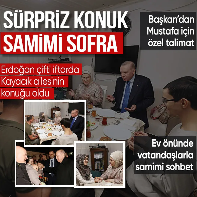Başkan Recep Tayyip Erdoğan ve eşi Emine Erdoğan'ı iftarda misafir eden Kayacık ailesi o anları anlattı. Erdoğan'ın sofra duasını bizzat yaptığını anlatan anne Miyase Kayacık, "İftar yaptıktan sonra akşam namazını evimizde kıldı. Cumhurbaşkanımız ve eşinin samimiyetine şahit olduk" dedi. Başkan Erdoğan, ailenin kanser hastası oğlu Mustafa için ise doktorlarını özel talimat verdi. Erdoğan, 'Mustafa'dan elinizi çekmeyeceksiniz. Tedavisini takip edin. Her zaman ailenin yanında olacaksınız. Oğlumuzun üzerinden elinizi çekmeyeceksiniz' ifadelerini kullandı.