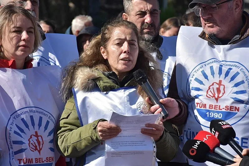 - Tüm Bel-Sen İzmir 2 No'lu Şube İdari Sekreteri Nurcan Hükenek, belediye tarafından verilen ödeme sözlerinin tutulmadığını ve yeni takvim yerine derhal ödeme talep ettiklerini açıkladı.