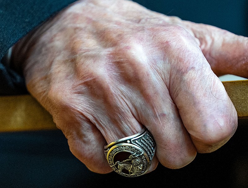 Öte yandan Bahçeli'nin, üst kısımda saldırı pozisyonunda mızraklı bir Türk Süvarisi, "Kızıl Elmaya Doğru" yazısı bulunan, yanlarında Göktürk Alfabesi ve günümüz Türkçesi ile Orhun Abidelerinden alıntıların yer aldığı yüzük ile saldırı pozisyonunda mızraklı bir Türk süvarisi olan "Kızıl Elmaya Doğru" yazılı rozet taktığı görüldü.