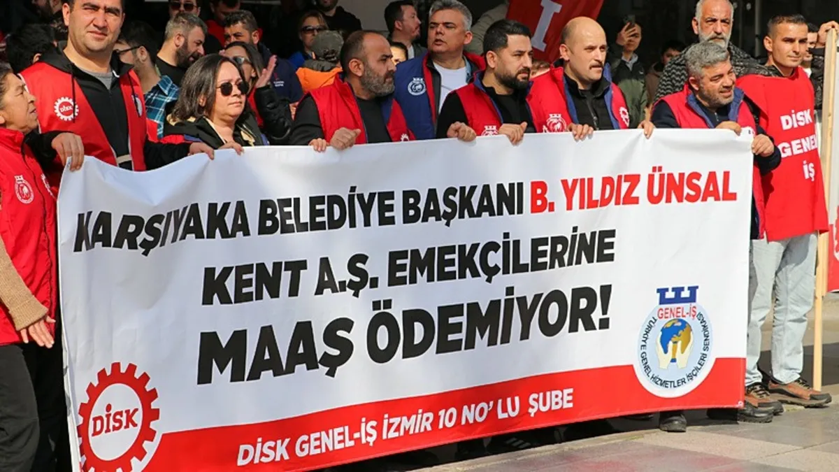 - İzmir'de Karşıyaka Belediyesi'ne bağlı KENT A.Ş. işçileri 8 aydır maaş alamadıklarını açıkladı.