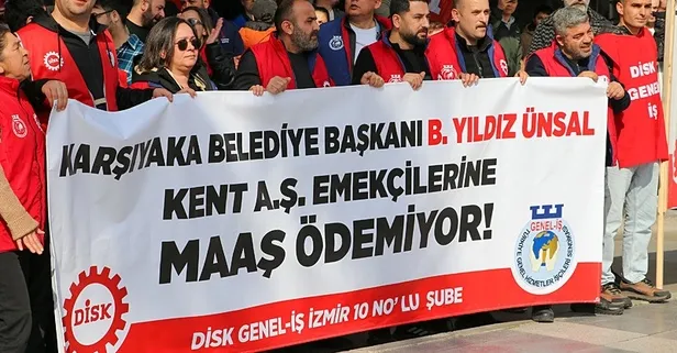 İzmir'de 5 yıldır maaşlarını düzensiz alan Karşıyaka Belediyesi'ne bağlı KENT A.Ş. işçileri 8 aydır da maaş alamıyor. Günlerdir seslerini duyurmaya çalışan işçiler dün de sokağa çıkıp "Başkan maaşlarımızı ödemiyor" diye haykırdı. Genel-İş İzmir 10 No'lu Şube'nin çağrısıyla Karşıyaka Çarşısı'nda yapılan eylemde 'Alın terimiz gasp edilemez', 'KENT AŞ işçisi köle değildir' ve 'Direne direne kazanacağız' sloganları atıldı.