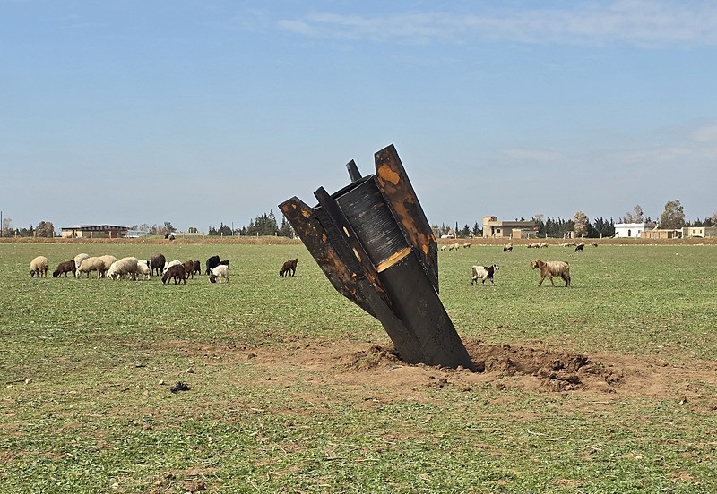 Suriye'nin Haseke iline bağlı, Türkiye sınırına yakın Kamışlı ilçesinin Dımhıyye el-Kebire köyüne İran'a ait olduğu belirtilen bir balistik füze düştü. Füzenin düştüğü bölgede ölü ya da yaralı olmadığı bildirildi. (Fotoğraf Anadolu Ajansı'ndan alınmıştır)