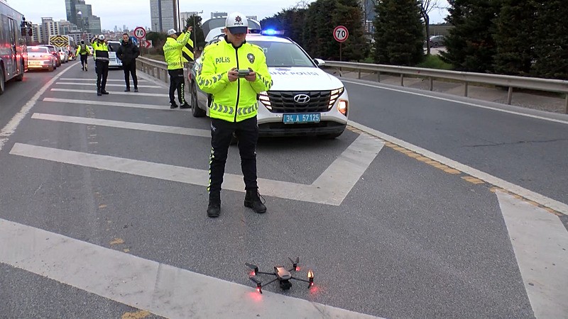 - İstanbul'da sabah saatlerinde usulsüz şerit kullanımı ve taralı alan ihlallerine yönelik İl Emniyet Müdürlüğü ekipleri dron destekli operasyon başlattı.