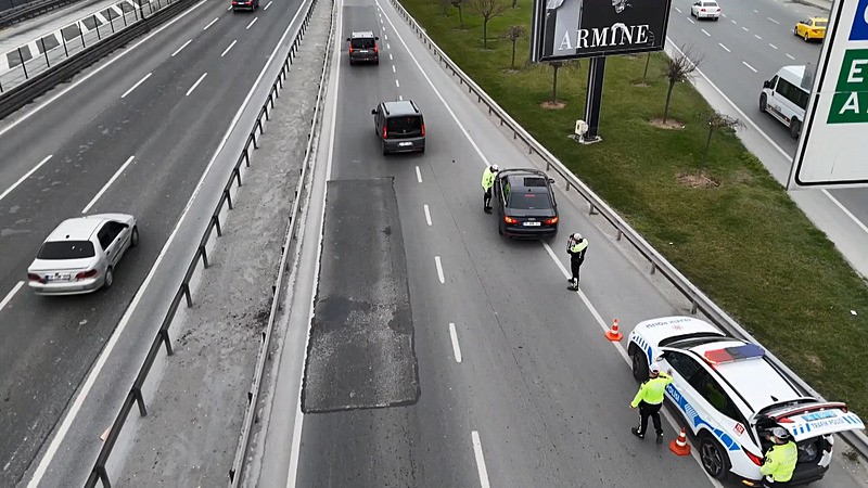 İstanbul Zeytinburnu D-100 yan yolda dronlu 'kaynak' denetimi. (Fotoğraflar DHA'dan alınmıştır.)