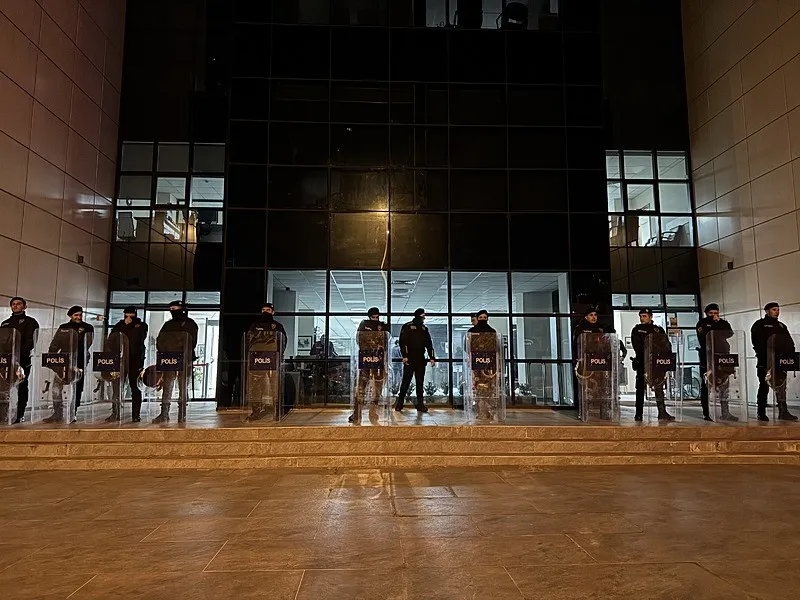 - Kaçakçılık ve Organize Suçlarla Mücadele ekipleri belediye binasında arama çalışması yürütürken çevik kuvvet ekipleri bina çevresinde güvenlik önlemi aldı.