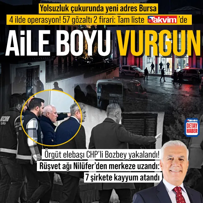 - Bursa Cumhuriyet Başsavcılığı koordinesinde yürütülen soruşturmada Bursa Büyükşehir Belediye Başkanı Mustafa Bozbey ve çok sayıda iş insanı gözaltına alındı.