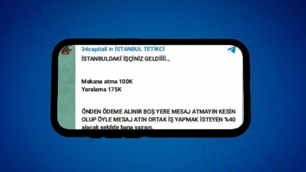 İstanbul merkezli 16 ilde düzenlenen operasyonda, "Telegram" isimli sosyal medya uygulaması üzerinden suç içerikli paylaşım yaptığı belirlenen 35 şüpheli gözaltına alındı. Şüphelilerin sosyal medya gruplarında, "Mekan tarama, yaralama, korkutma, silahlı tehdit, sadece ciddi iş verecek kişiler yazsın." ifadeleriyle çok sayıda ilan verdiği belirlendi.