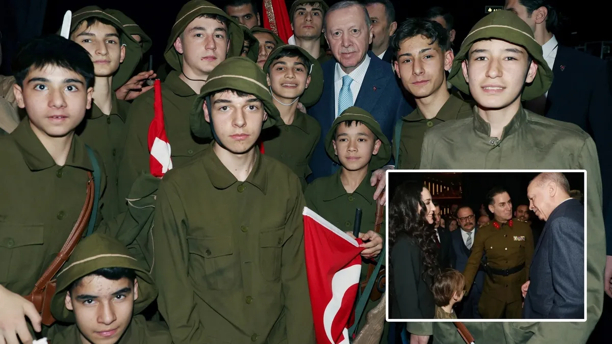 Çanakkale Zaferi’nin 111. yılı anısına hazırlanan ve senaryosu Milli Eğitim Bakanı Yusuf Tekin’e ait olan özel tiyatro projesi, izleyenlere duygu dolu anlar yaşattı. Sahne bitiminde sanatçılarla bir araya gelen Başkan Erdoğan, ünlü oyuncu Bekir Aksoy’un oğluna hediye verirken, aileye üç çocuk tavsiyesinde bulundu. A Para ekranlarında yayınlanan programa katılan tiyatro sanatçıları Bekir Aksoy ve Ziya Kürküt, Milli Eğitim Bakanlığı koordinasyonunda sahnelenen eserin detaylarını paylaştı.