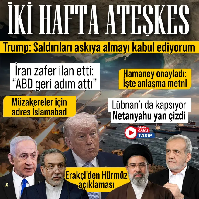 - Pakistan Başbakanı Şahbaz Şerif, İran yönetiminden Hürmüz Boğazı'nı iki hafta süreyle açmasını talep etti.