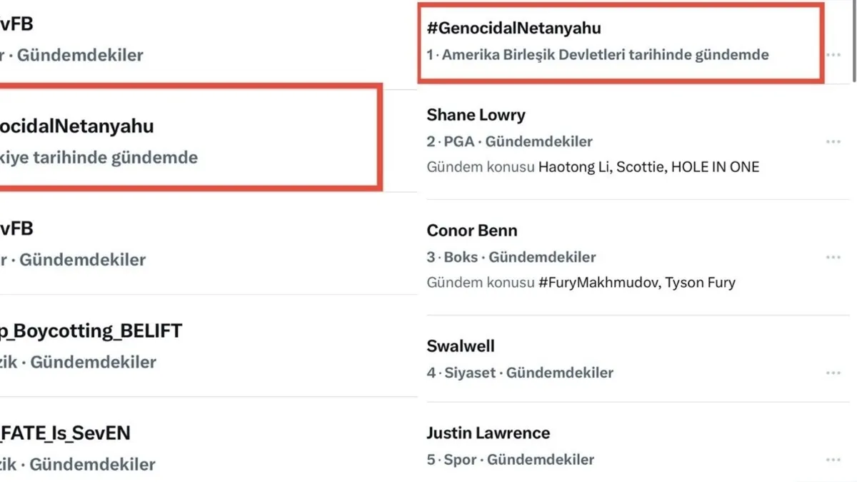 Siyonist Netanyahu’nun Türkiye’yi ve Başkan Recep Tayyip Erdoğan’ı hedef alan açıklamalarına karşı başlatılan sosyal medya hareketi kısa sürede dünya gündemine oturdu. "#GenocidalNetanyahu" etiketi Türkiye’nin yanı sıra ABD’de de en çok konuşulan başlıklar arasında ilk sıraya yükselirken, Türk resmi kurumlarından ve uluslararası kamuoyundan Netanyahu’ya kınama mesajları yağdı.