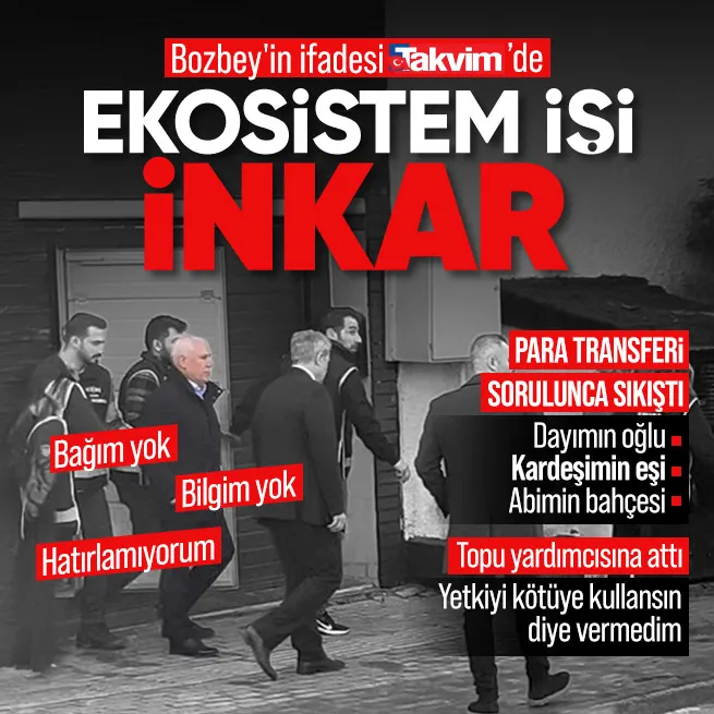 Tutuklu Mustafa Bozbey, maaile adının karıştığı 16 milyar TL'lik yolsuzluk soruşturmasına ilişkin savcılıkta 14 saat ifade verdi. Bozbey, ifadesinde "hatırlamıyorum", "bilgim yok" ve "akrabamdır ama bağım yok" cümlelerinin arkasına sığındı.