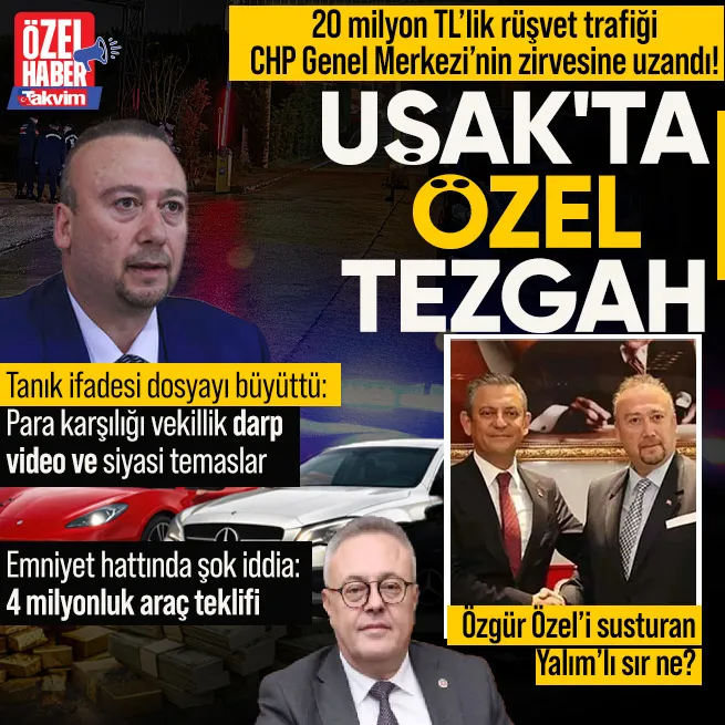 Uşak Belediyesi'nde patlak veren rüşvet skandalında CHP'li Özkan Yalım'ın Uşakspor kılıfı altında kurduğu karanlık tahsilat çarkı deşifre oldu. İstanbul Cumhuriyet Başsavcılığı'nın yürüttüğü soruşturma dosyasına giren tanık ifadeleri, Özkan Yalım'ın esnafı nasıl haraca bağladığını kanıtladı.