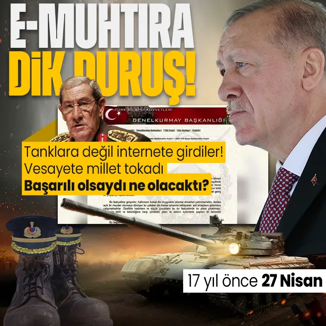 27 Nisan 2008 e-muhtırasının üzerinden 19 yıl geçti. "Türkiye’de ilk" olma özelliği taşıyan muhtıraya karşı hükümetin anında cevap verip geri adım atmaması Türk demokrasi tarihinde dönüm noktası oldu. Recep Tayyip Erdoğan'ın dik duruşuyla 28 Şubat sonrası "1000 yıl sürecek" denilen darbe iklimi bertaraf edildi. Muhtıraya giden süreç TSK içinde vesayet odakları, Ahmet Necdet Sezer, AYM, Yargıtay ve CHP'nin söylem işbirliğine sahne oldu. ABD ve İngiltere'den ısmarlama "darbe" manşetleri attırıldı, Sezer son MGK'sında "irtica" deyip cuntacılara yol verdi. CHP "laiklik" mitingleriyle muhtıraya zemin hazırlarken Sabih Kanadoğlu 367 garabeti ile demokrasinin el frenini çekti. 27 Nisan muhtırasına alkış tutanları isimleri ise tarih unutmuyor, Takvim.com.tr hatırlatıyor.