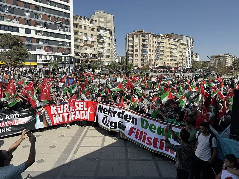 El-Aksa Platformu ve bazı sivil toplum kuruluşlarının öncülüğünde İzzet Paşa Camisi önünde toplanan kalabalık, taşıdıkları Filistin bayrakları ve pankartlarla, Gazi Caddesi'nden Cumhuriyet Meydanı'na kadar yürüdü.