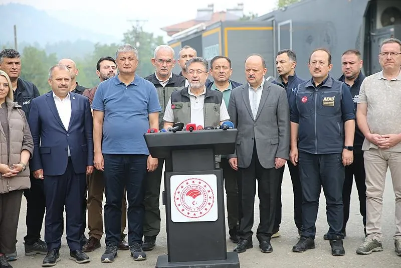 "Çünkü başladığı andan itibaren 15-20 dakika içerisinde yani siz her ne kadar ilk etapta 8-10 dakika, 11 dakika müdahale ediyorsanız da çok hızlı şekilde ilerleme potansiyeline sahip. O yüzden bunu tekrar hatırlatmak istiyorum. Diğer bir hatırlatmam da şu. Bu her üç yangın için de yani hem Karabük hem Kastamonu yangınları için söyleyeceğim. Biz, 'Büyük ölçüde kontrol altına alındı.' dedik ancak tedbir amacıyla boşaltılan yerleşim yerlerine geri dönüşler AFAD'ın koordinasyonunda. Valiliklerimiz tarafından kamuoyumuzla ve vatandaşlarımızla köy bazında bildirilecek. Yani benim bu açıklamamdan sonda vatandaşlarımız kendiliğinden evlerine geri dönmesinler. Çok kısa süre içerisinde zaten valiliklerimiz bunları açıklamaya devam edecek. O yüzden vatandaşlarımızdan valiliklerimizin açıklamasını takip etmelerini özellikle istirham ediyorum."