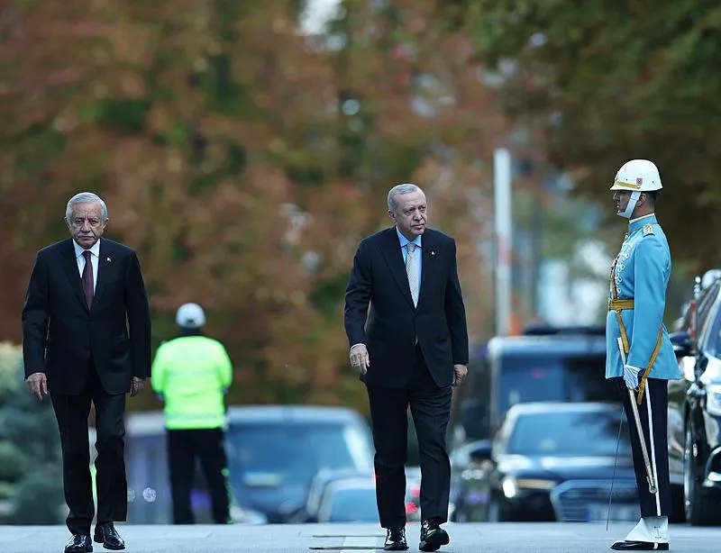 TBMM Başkanı Numan Kurtulmuş, Cumhurbaşkanlığı Onur Kıtası'nı selamlayan Başkan Erdoğan'ı Şeref Kapısı önünde karşıladı.