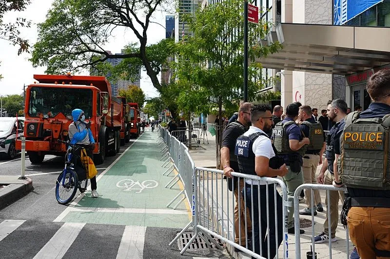 Türkevini'nin bulunduğu caddede yaya trafiği barikatlarla sınırlandırıldı. Çöp araçları ve polis araçlarının da bulunduğu caddede çok sayıda New York polisi de konuşlandı. TOMA ve çevik kuvvetin yanı sıra keskin nişancılar da BM binası çevresinde güvenliği sağlamaya başladı.
