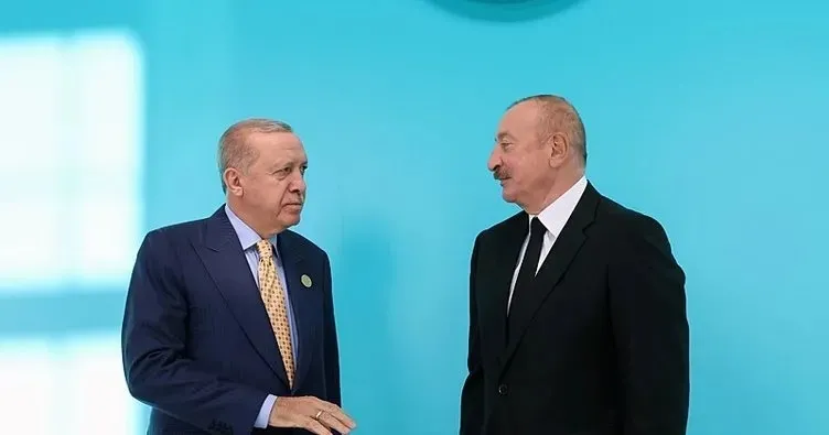 Başkan Erdoğan, zirvenin düzenlendiği alana gelişinde, Aliyev tarafından karşılandı.