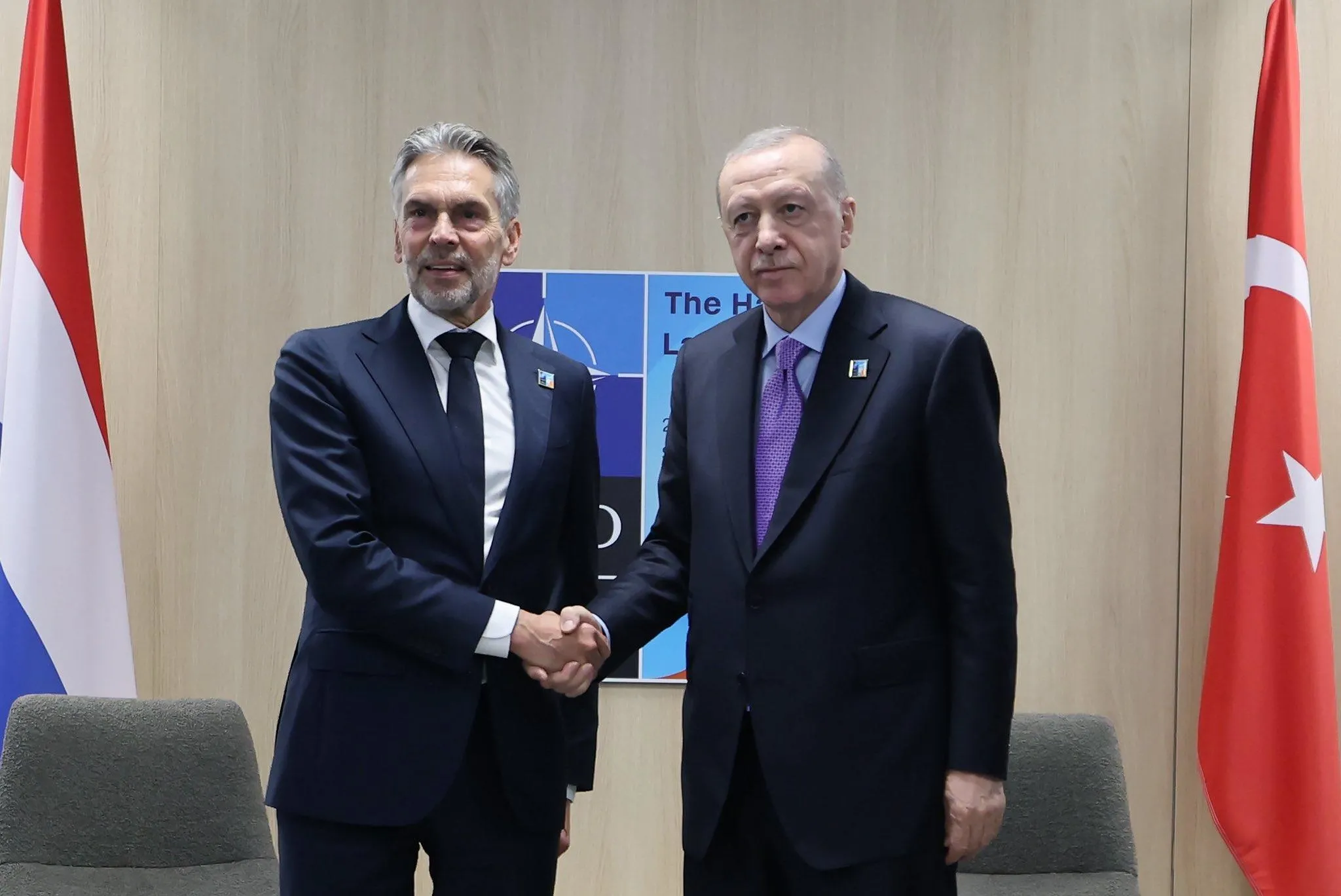 Başkan Recep Tayyip Erdoğan, Hollanda'nın Lahey kentinde düzenlenen NATO Devlet ve Hükümet Başkanları Toplantısı kapsamında Hollanda Başbakanı Dick Schoof ile görüştü.