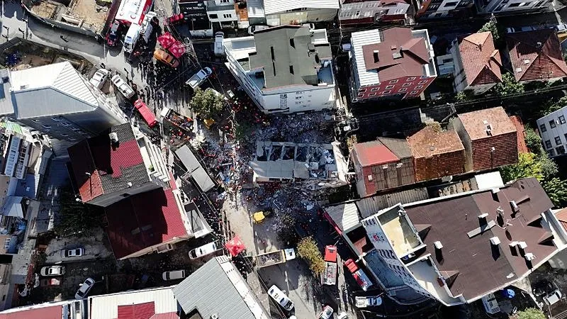 Bu arada, 7 katlı binanın yıkılma anı çevredeki bir güvenlik kamerası tarafından kaydedildi. Görüntülerde, binanın saat 07.00 sıralarında caddeye doğru yıkılması, yıkılırken elektrik kablolarını koparması nedeniyle parlamanın yaşanması, enkazdan çıkan beyaz toz bulutunun etrafa yayılması ve çevredeki insanların olay yerinde toplanması yer alıyor.