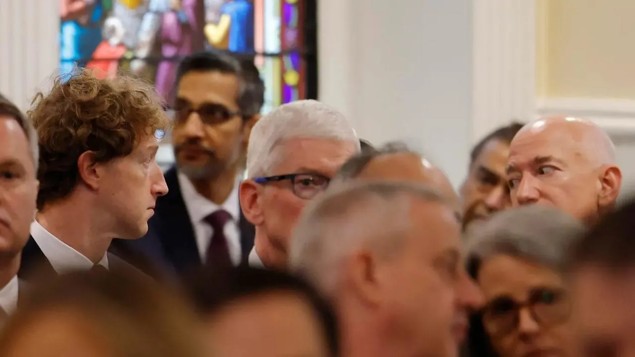 Seçilmiş Başkan Donald Trump, ikinci Yemin Töreni Günü'nü pazartesi günü St. John Kilisesi'nde düzenlenen bir törenle, ailesinin, yönetiminin ve yakın çevresinin yanı sıra bir avuç teknoloji milyarderiyle birlikte başlattı. Törenden gelen ilk fotoğraflarda Meta ve Facebook CEO'su Mark Zuckerberg, Google CEO'su Sundar Pichai, Apple CEO'su Tim Cook ve Amazon ile Blue Origin'in kurucusu Jeff Bezos görüldü.